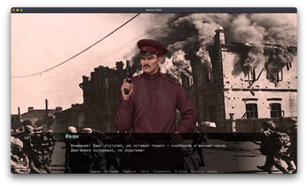 Звуковое сопровождение включает аутентичные звуки военного времени: артиллерийские обстрелы, пулеметные очереди, голоса мирных жителей. Визуальный ряд создан с использованием современных технологий Ren'Py с применением эффектов частиц, плавных переходов и динамических камер.